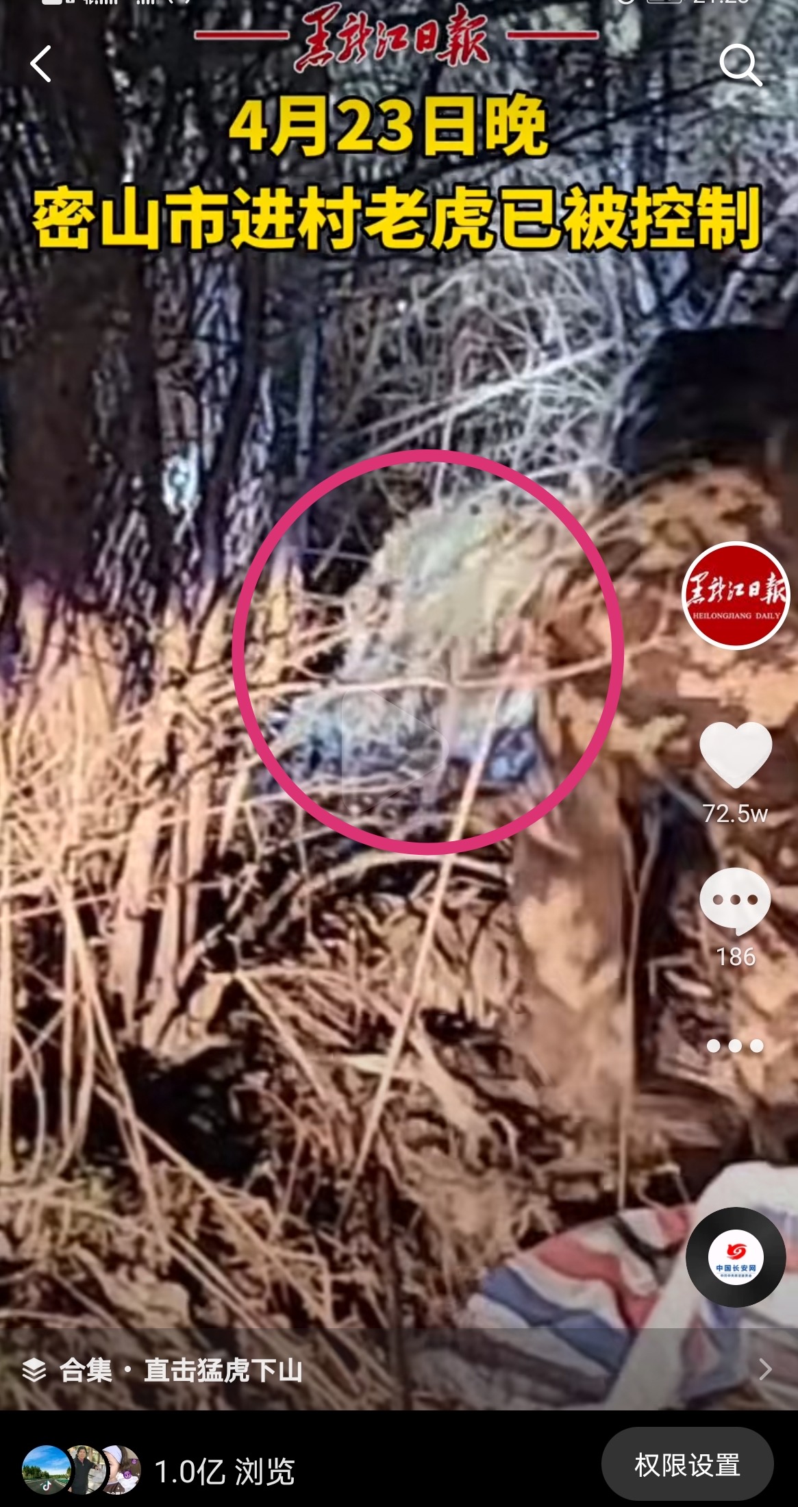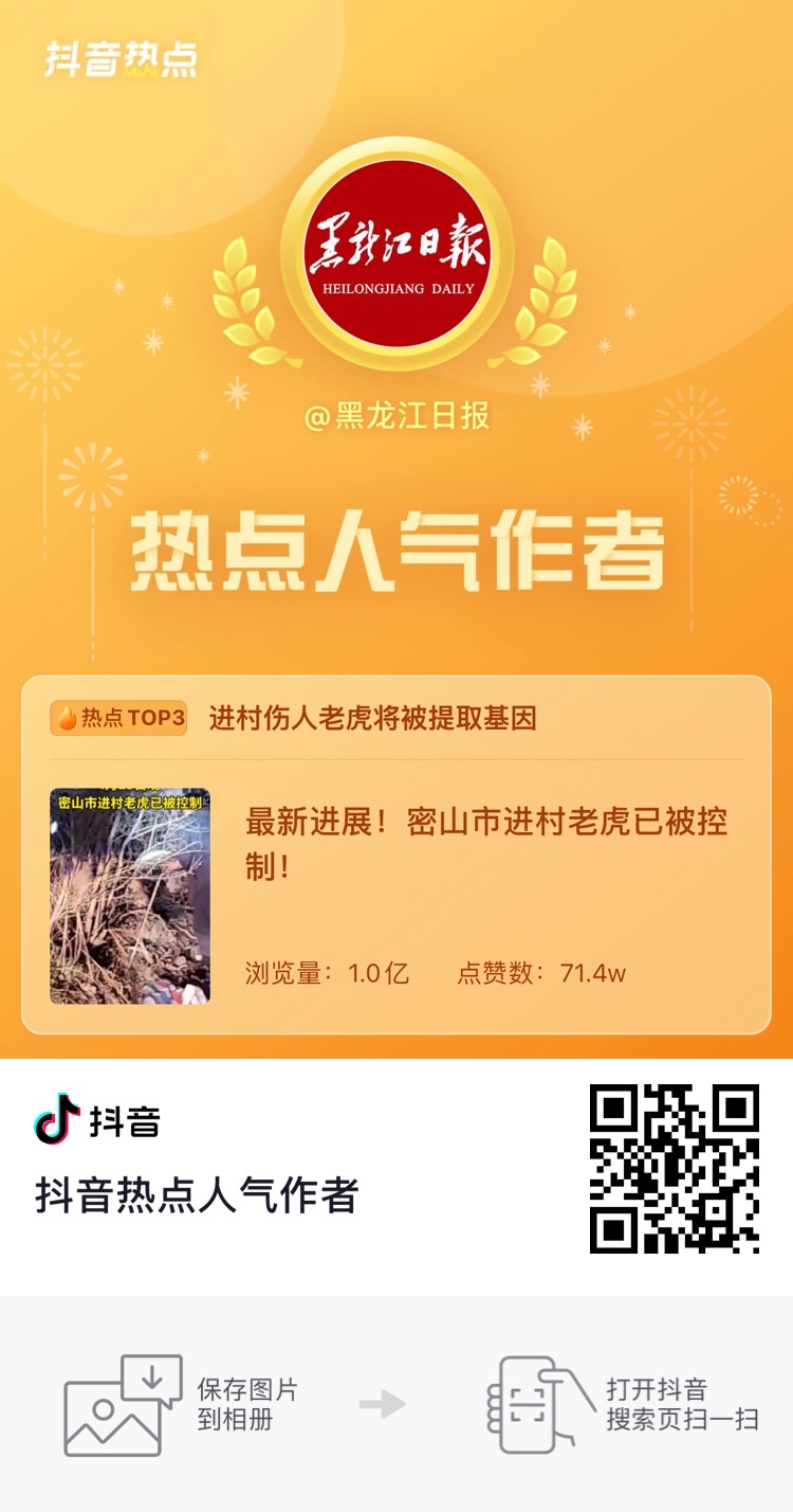2021年4月23日,黑龍江省密山市白魚灣鎮(zhèn)臨湖村“驚現(xiàn)”一只成年野生東北虎......接下來,這只“進(jìn)村虎”引發(fā)了全國(guó)媒體的關(guān)注,黑龍江日?qǐng)?bào)報(bào)業(yè)集團(tuán)旗下各媒體也積極跟蹤事態(tài)發(fā)展。其中,黑龍江日?qǐng)?bào)抖音號(hào)推送的《最新進(jìn)展!密山市進(jìn)村老虎已被控制!》單條瀏覽量突破1個(gè)億,登上抖音熱點(diǎn)榜TOP3,并獲得抖音“熱點(diǎn)人氣作者”稱號(hào)。黑龍江日?qǐng)?bào)和龍頭新聞抖音號(hào)分別推出了“直擊猛虎下山”專輯,截至記者發(fā)稿時(shí),15條短視頻的總播放量已接近兩億。