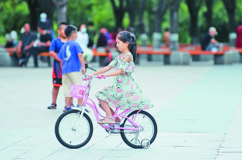 8月1日傍晚,在哈爾濱市南崗區(qū)剛開園不久的農(nóng)科院公園內(nèi),有幾十名孩子在玩耍。他們有的跟著長輩健身、走圈兒,有的在廣場上跳舞、玩玩具,更多的是兩三個在一起做游戲、嬉鬧?!疤鞖忸A報說一會兒有雨,可我孫女還是要來玩?!币幻鴱V場舞的大娘說,每天這里都有成群的孩子玩耍,無憂無慮的,讓人看著就開心。