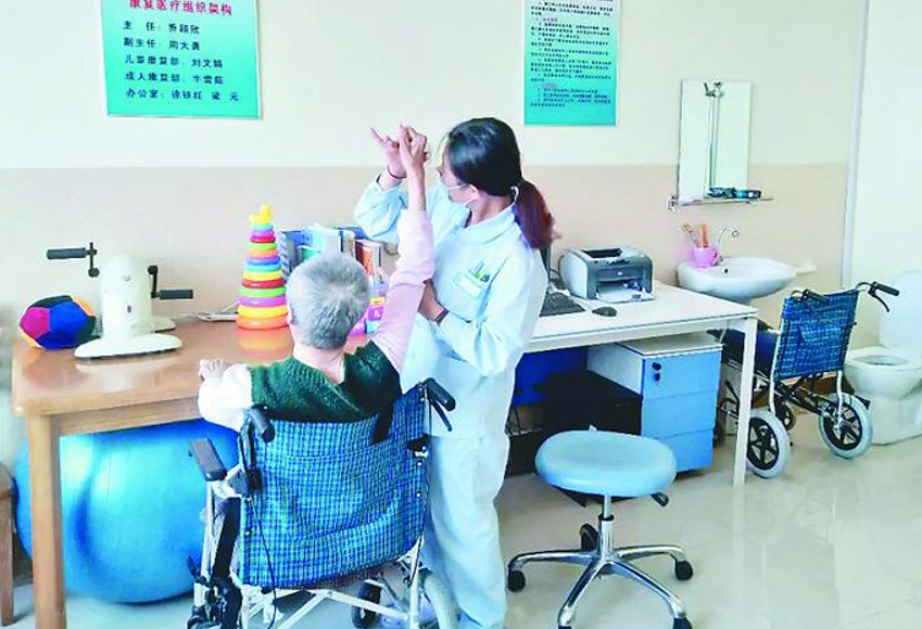 養(yǎng)老護(hù)理人員幫老人鍛煉