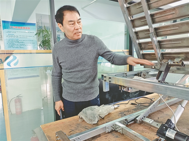 在他的無人機展廳,王忠信一件件地介紹起他的寶貝,像個孩子在炫耀自己的玩具。輪到“智能護理康復機器人”了,他說這也可稱作“智能護理康復床”。