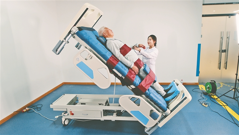 “站立!”語音發(fā)出后,原本躺平的記者緩緩站立起來,并按要求自動行走到指定位置,窗外景色盡收眼底。“站立這個動作有助于消除長期臥床引起的充血和水腫,降低褥瘡風險,經常站立能保持呼吸通暢,確保氧氣供給,預防患者肺部感染?!蓖趵渍f。