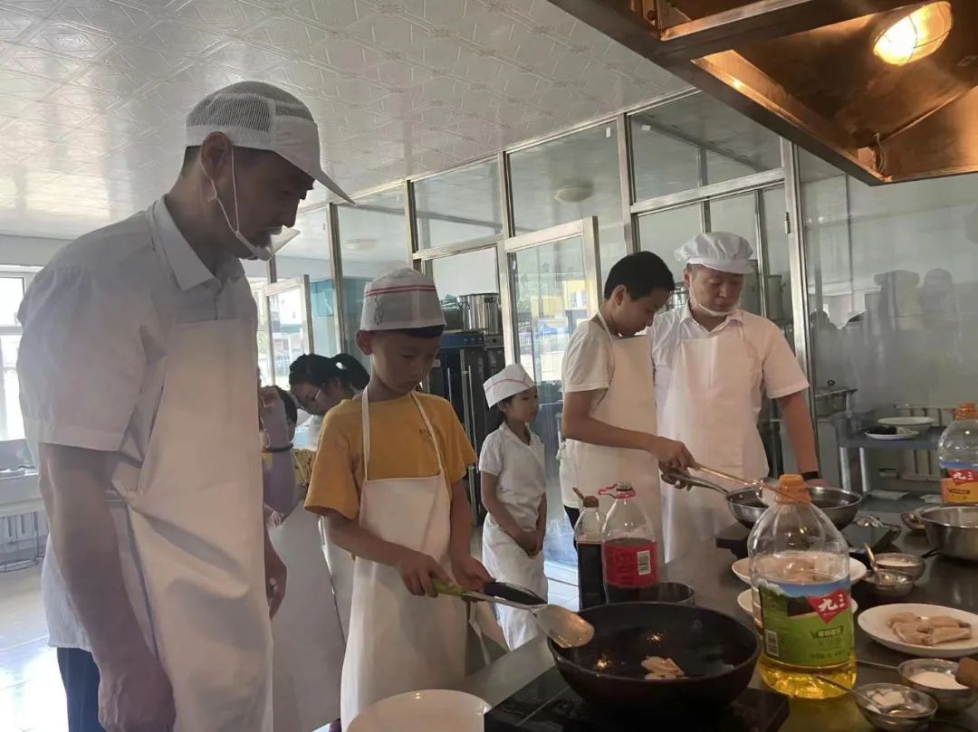 烹飪班的學(xué)生通過五天的學(xué)習(xí),學(xué)會了燜米飯、掌握了勺拌皮、木須柿子、撈汁什蔬、可樂雞翅、香煎西葫蘆、雞腿燉土豆、水果沙拉、餛飩等十道菜肴的制作方法,每次吃到自己動手制作的食物,都感到無比的驕傲,同時體會到一餐一食來之不易,更加理解父母為自己所做的付出。