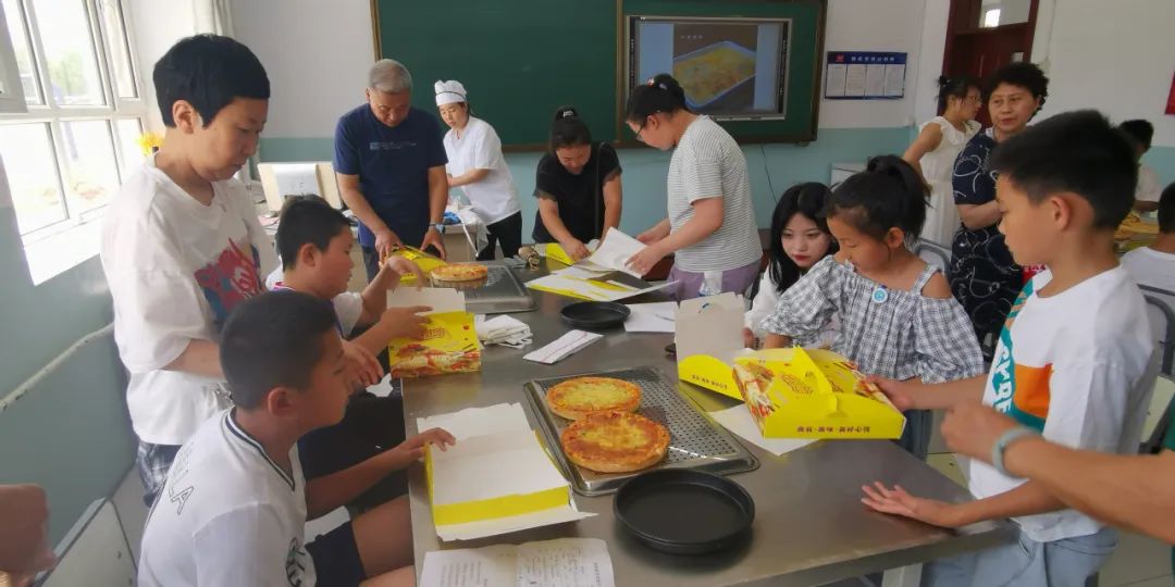 披薩制作班的學(xué)生,在學(xué)習(xí)中認(rèn)識到了速食的由來和歷史,通過親身實(shí)踐披薩制作的全過程,掌握了稱料、和面、發(fā)酵、制作各種餡心披薩可使用的餡料以及烤制的注意事項(xiàng),當(dāng)香噴噴的披薩出爐時,同學(xué)們眼神和嘴角不由自主地露出笑容。在教師的引導(dǎo)下,他們知道了勞動成果應(yīng)該與父母和同伴一同分享。教師向?qū)W生講解勞動實(shí)踐的價值不僅是讓同學(xué)們學(xué)會生存的本領(lǐng)、感受勞動的快樂和艱辛,更要讓學(xué)生們學(xué)會感恩,養(yǎng)成樂于分享的品質(zhì)。